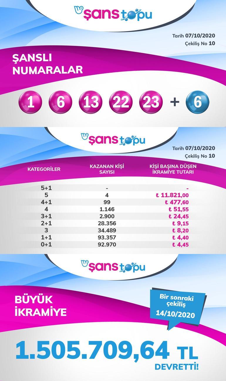Sans Topu Cekilis Sonuclari Belli Oldu 7 Ekim 2020 Gunu Sans Topu Cekilisinde Buyuk Ikramiye Son Dakika Milliyet