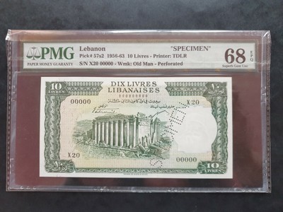 Lebanon 1956 10 Lira Pmg 68 Top Specimen Banknote Ebay