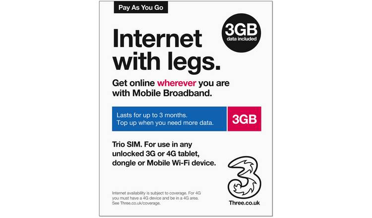 Buy Three 3gb Pay As You Go Data Sim Card Sim Cards Argos