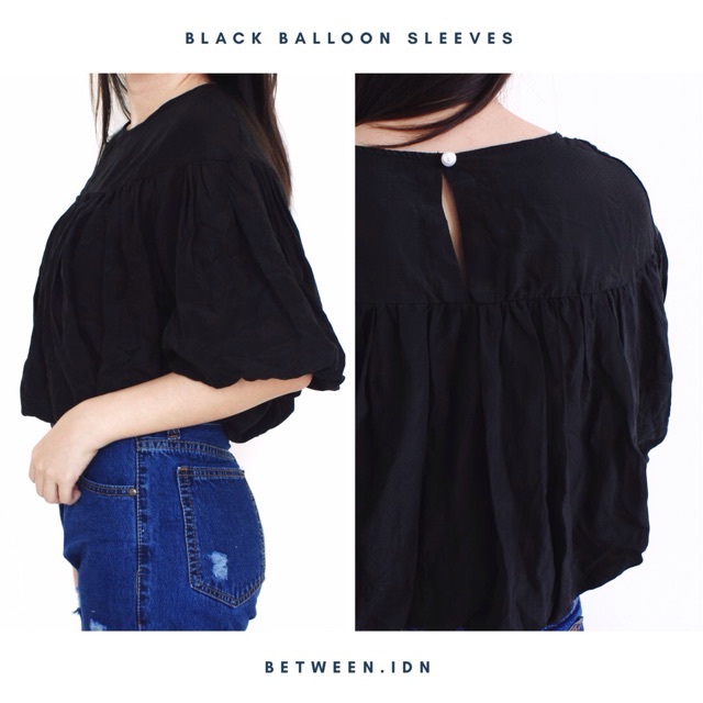 Kadin Siyah Balon Kollu Crop Bluz 19y692981r08 Lafaba