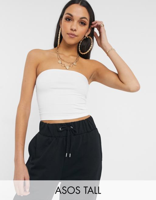 Asos Design Tall Ultimate Organic Cotton Crop Bandeau Top In White Asos