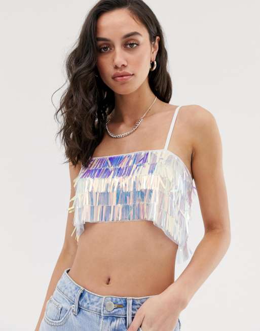 Bershka Irridescent Crop Top In Multi Asos