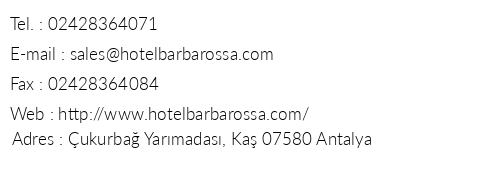 Club Hotel Barbarossa Kaş Iletişim