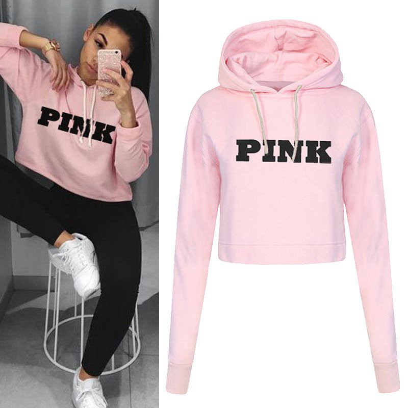 Sweater Crop Top Hoodie Fashion Wanita Lengan Panjang Motif Tulisan Pink Ukuran S Xl Shopee Indonesia