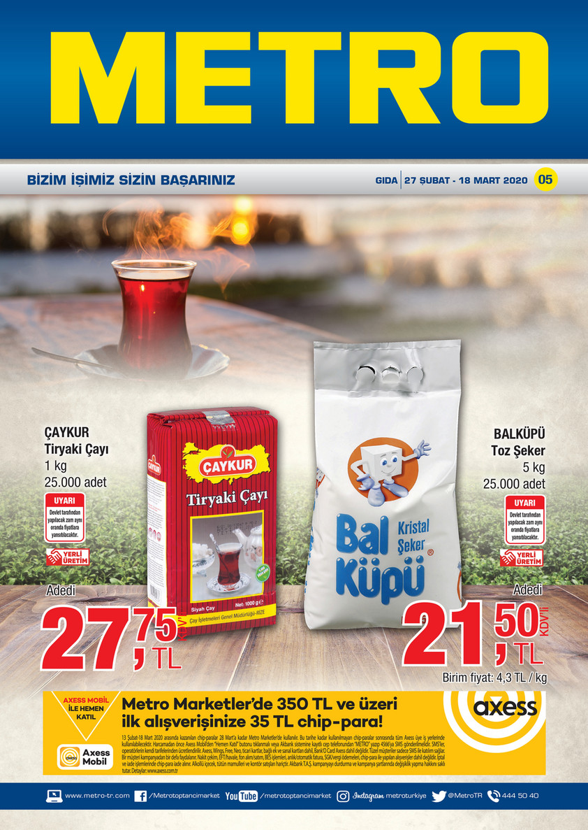 Metro marketlerde geçerli kampanya fırsat kataloğu 29 ekim 2020 ile 18 kasım 2020. Metro kart metro kart a başvurun ayrıcalıklardan yararlanın. Metro i̇stanbul daki ürünlerin hepsi kontrolden geçerek diğer illere dağıtılmaktadır. Tat domates ürünleri̇ bezelye garni̇tür ürünleri̇ haşlanmiş ürünler ve hazir yemekler 25 i̇ndi̇ri̇mli̇ 10 000 adet salça ürünleri dahil değildir.