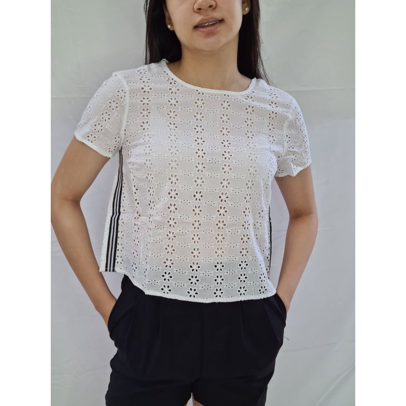 Stradivarius Ladies Swiss Embroidery With Back Zip Tops Shopee Philippines
