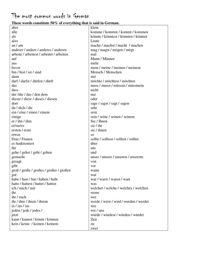 Top 100 German Words Most Common Words In German German Words French Words Spanish Words