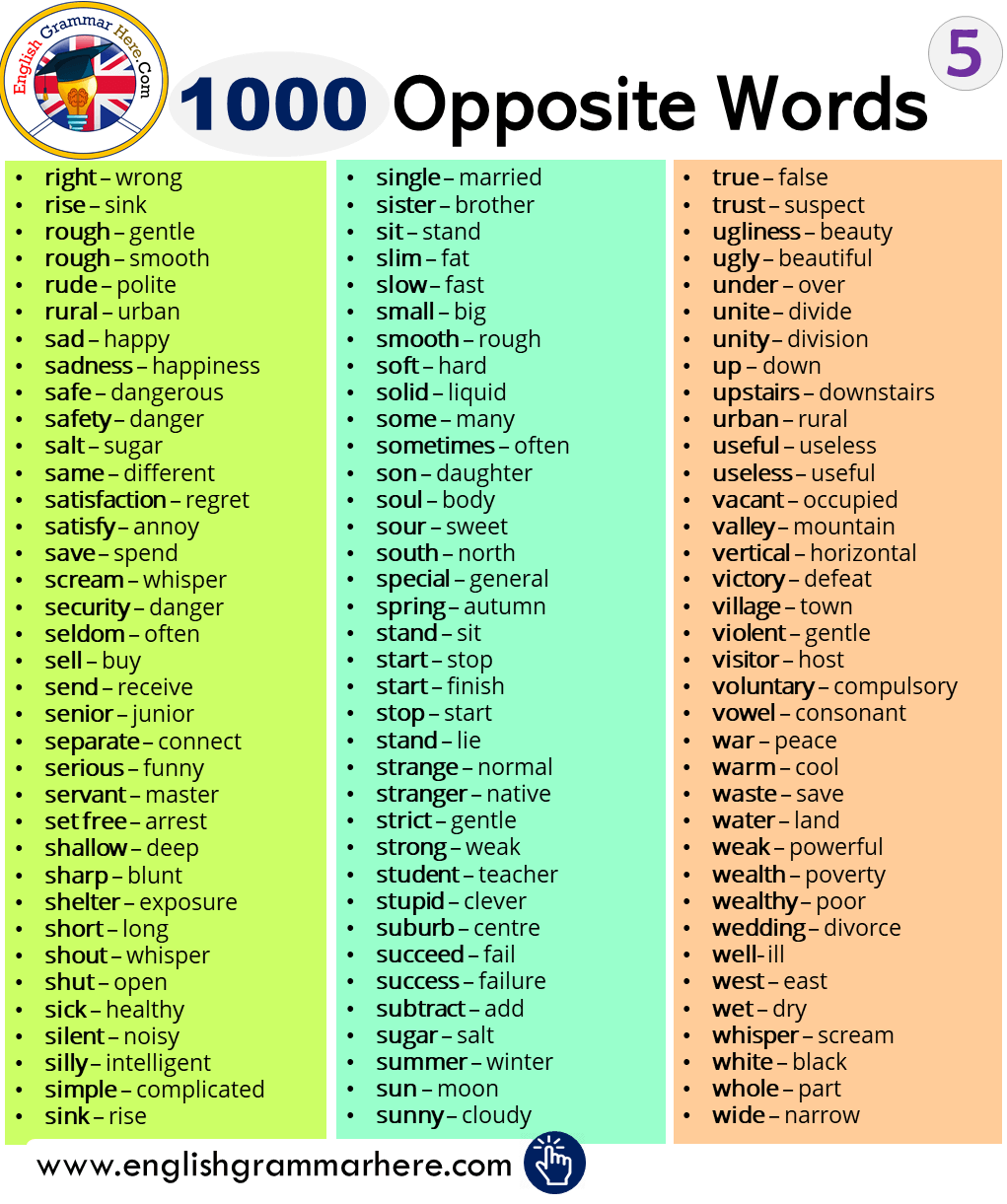 1000 Opposite Words List English Grammar Here