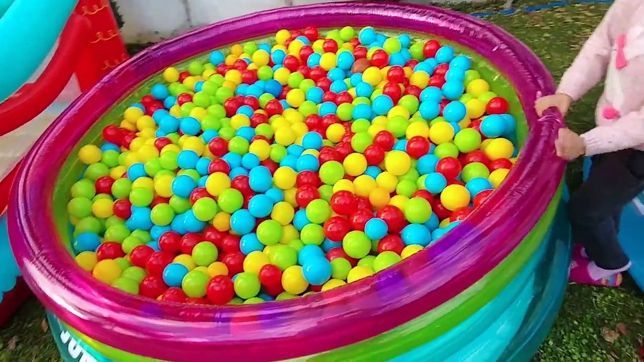 3 top havuzu bahçede eğlenceli çocuk videosu.