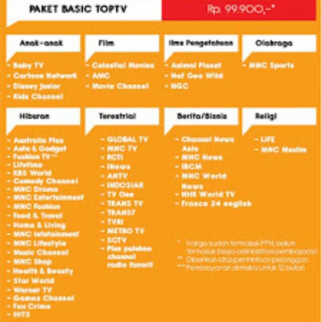 Daftar Channel Paket Top Tv Terbaru 2016 Infopromoharga