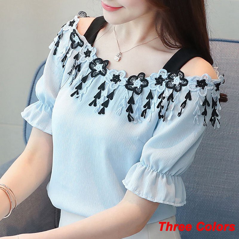 New Summer Off Shoulder Tops Women Chiffon Blouse Fashion Tassel Patchwork Tops Shopee Malaysia